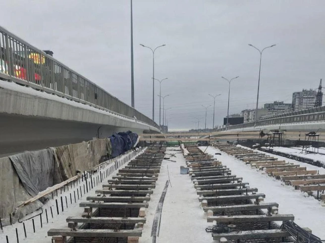 «На 5-м этапе строительства развязки подрядчики продолжат работы по монолитным участкам, а также устройству фундаментов и опор путепровода».